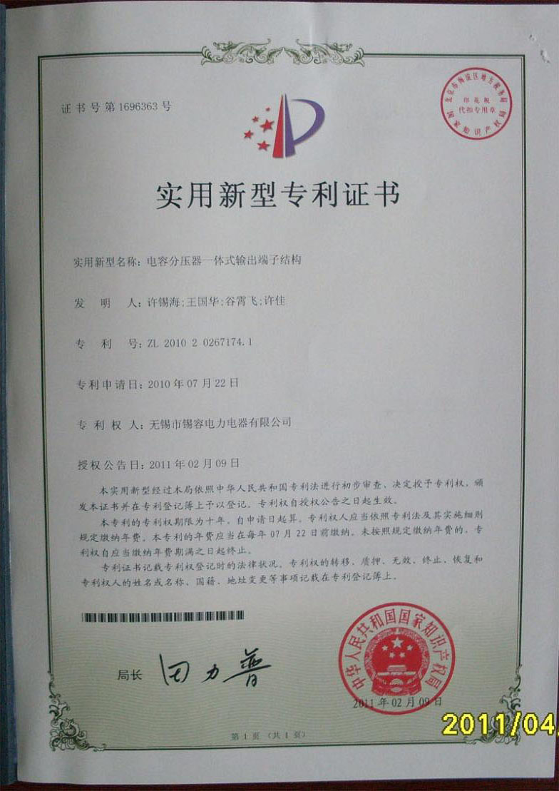 Utility model patent certificate