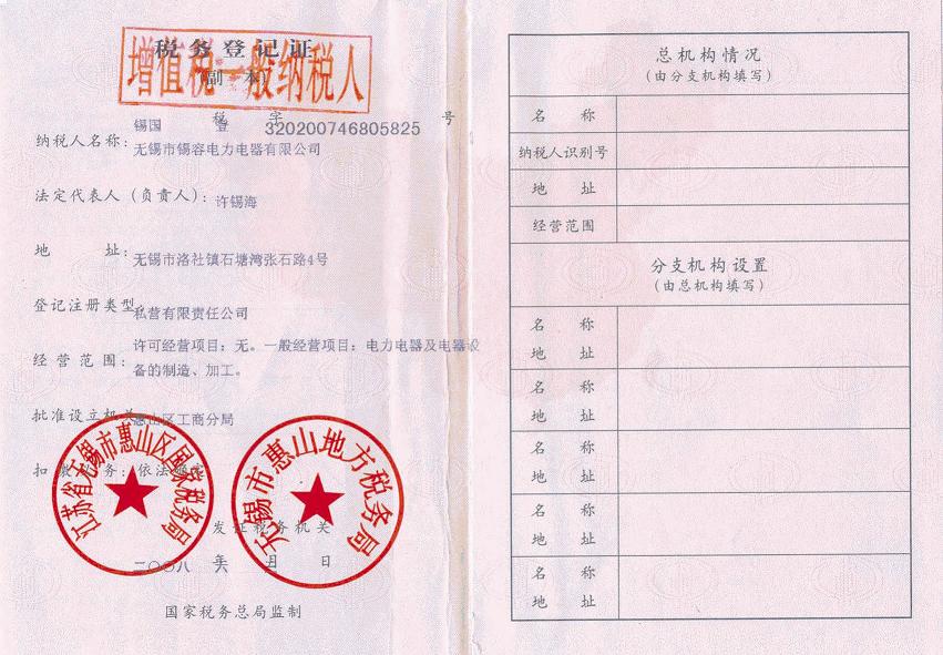 Tax registration certificate release time:2020-07-20 04:34:39source:Wuxi Xirong Electric Appliance Co., Ltd.Click:1908