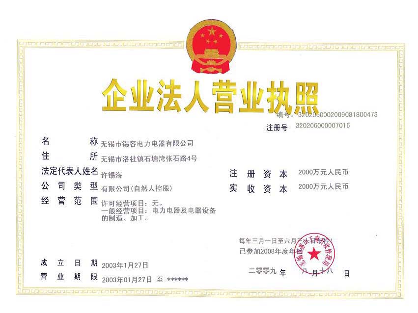 Business license release time:2020-07-20 04:35:57source:Wuxi Xirong Electric Appliance Co., Ltd.Click:1820